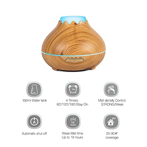 Amgaze Aroma Essential Oil Diffuser, 150ml Ultrasonic Cool Mist Humidifier with 7 Color LED Lights, 2 Adjustable Mist Mode, Waterless Auto Shut-Off for Home Yoga Office Spa Baby
