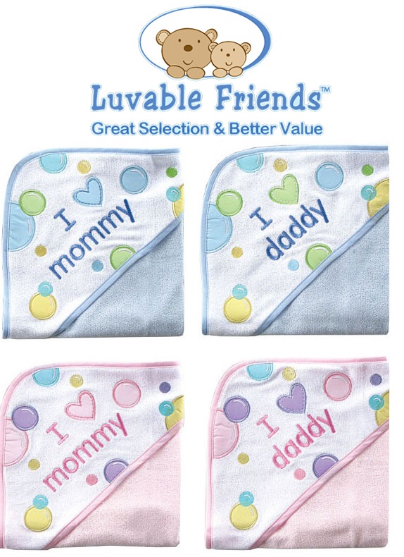 Luvable Friends hooded towels are made of cotton-rich absorbent knit terry to make drying your baby easy. The hooded design keeps your baby warm and cozy after bath.