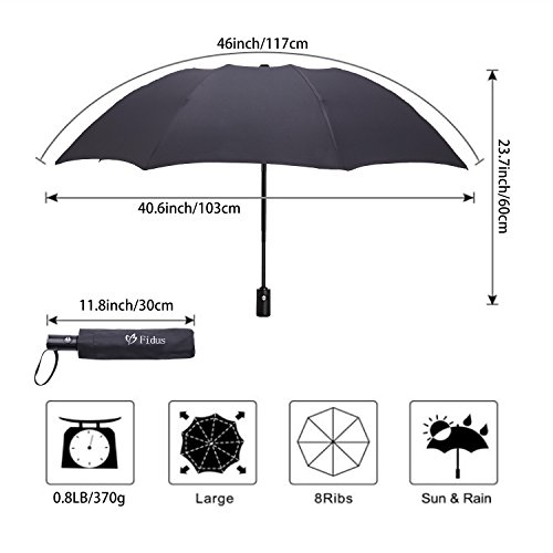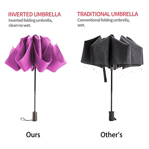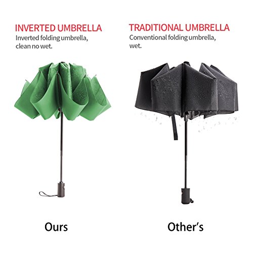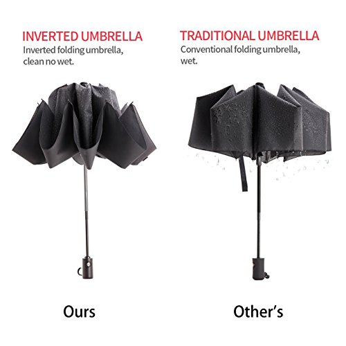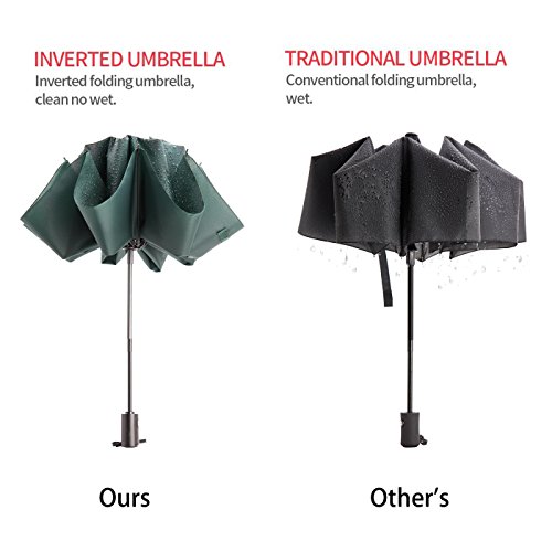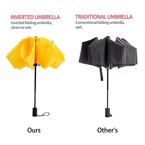 Portable while Durable Quality: Shorted and lighter than other regular unfolding umbrella, ours is quite easy to carry around you without weighing you down. Perfectly put it into backpack, school bag, car and more. The reinforced fiberglass ribs and the strong shaft enable it to withstand in the heavy rain and high wind, waterproof and windproof, durable enough to impress you!
