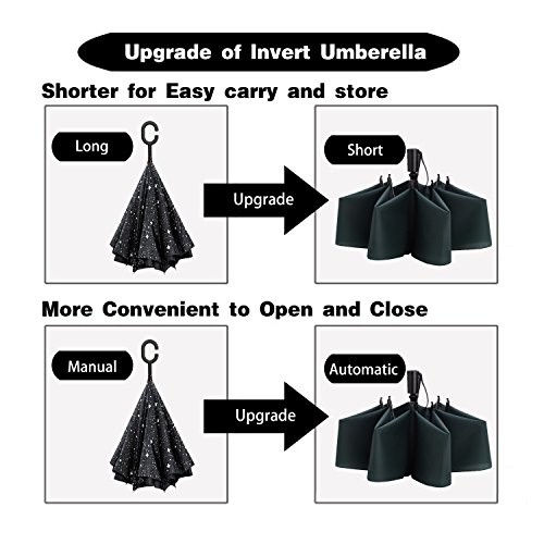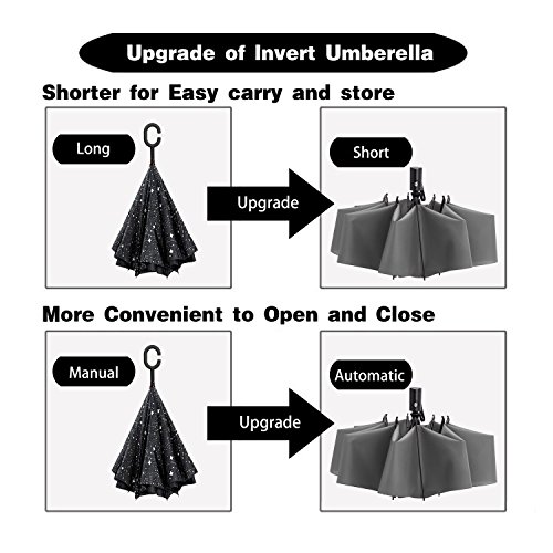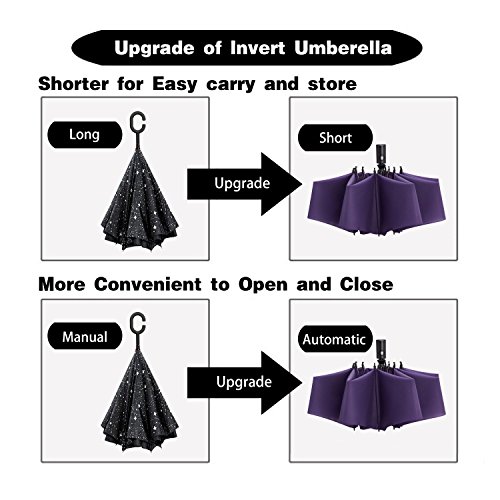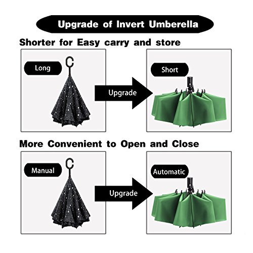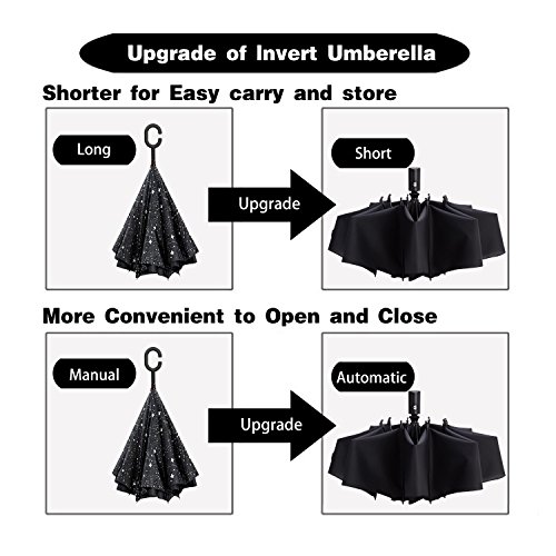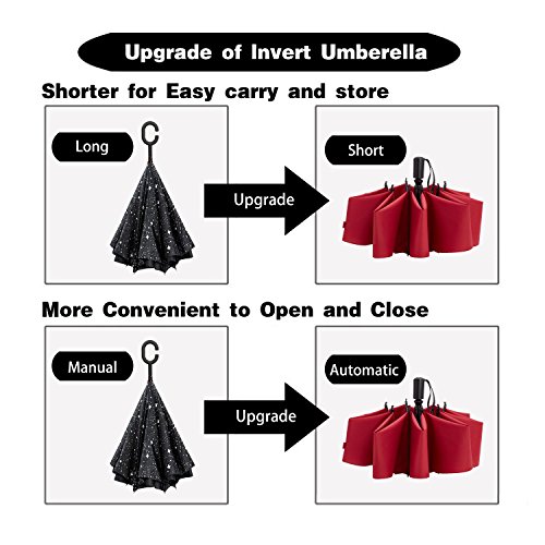 Reversible Folding Design: Thanks to this innovative folding idea, you could keep yourself dry with ease when you get on ant off your car in the rainy days. Easy and comfortable to use without wetting your car seat and saving space due its compact and shorter design.