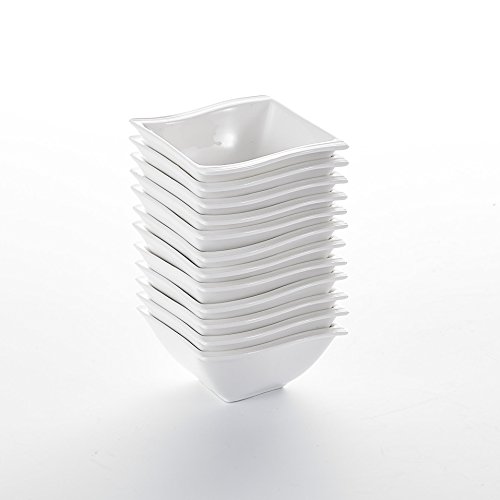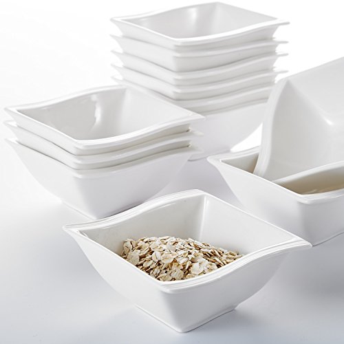 Malacasa, series flora,12-piece 3.75" china ceramic square bowl ivory cream white porcelain bowl dessert dinnerware tableware cereal bowls snack dip bowl(9*9*4cm)(set of 12)premium 12-piece dinnerware set bring an elegant sense of contemporary style to the kitchen, dining room or even the breakfast corner with this everyday dinner set. A nice choice for family meals and casual gatherings3.75" bowl size - 9*9*4cm weight:95gincludes12 x 3.75" bowl.