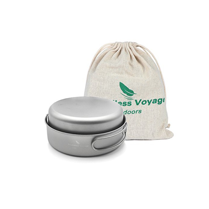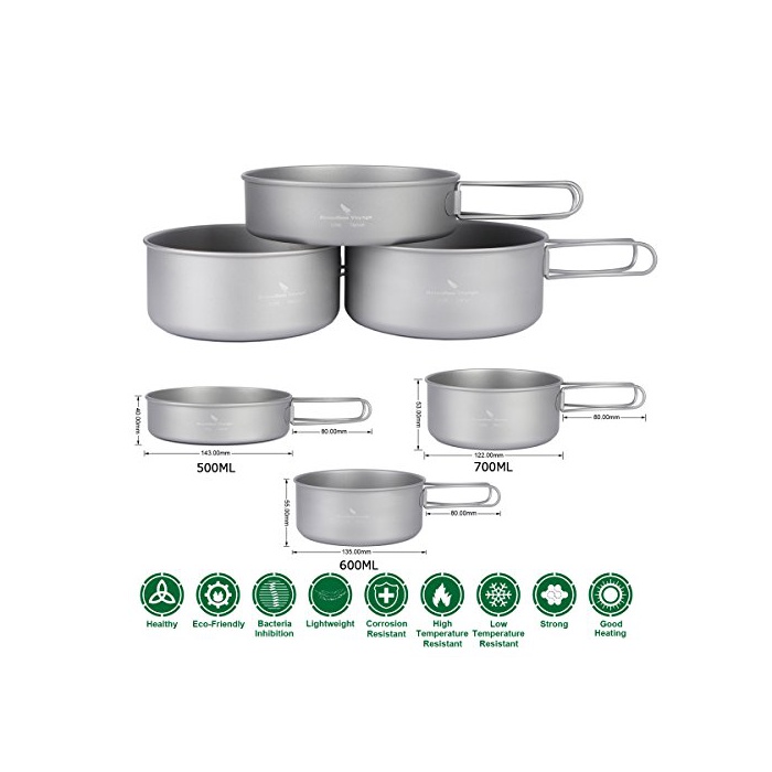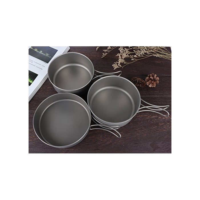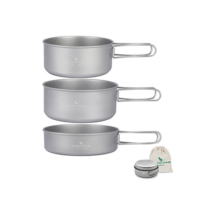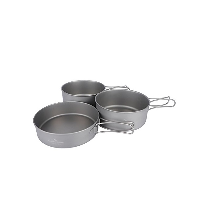 Boundless Voyage 포터블 캠핑 냄비 프라이팬 식기 3점 세트 조리 기구 키친 툴 캠프 용품 조리 기구 휴대 봉투 첨부(Ti1577B)