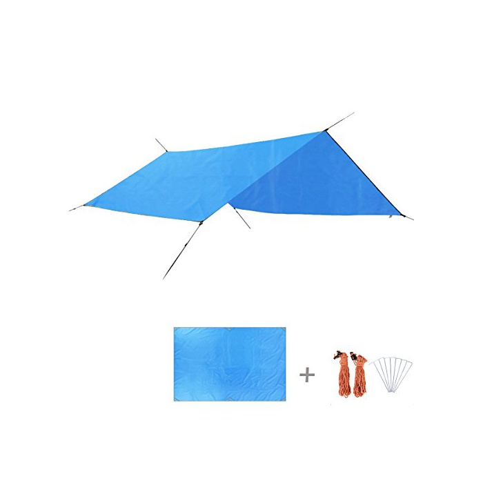 산 대피소용 -- Triwonder블루 씨트의 코너에는 금속 링이 6개 있고, 로프와 텐트 폴을 모두 사용하고, 해먹(hammock)의 커버(응달/비의 천막)를 간단하게 셋업 할 수 있습니다(텐트 폴은 장비 되고 굽히지 않습니다)