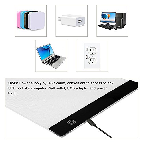 Name: Anime A4 LED Drawing Copy Tracing Light Box Machine panel: hardened acrylic type, printed with a professional scale scale Peripheral dimensions: 25cmX35cm Viewable size: 21cmX31cm Weight: 0.7KG Operating voltage: 5V Rated power: 3W Light source: LED Color temperature: conventional 6500K-9000K, Light intensity: 2000LUX-2500LUX Light guide: screen printing / engraving light guide plate Scale Size: Yes Thickness: 5 mm. Third gear dimming: 45% -70% -100% three stalls clear, simple and quick operation, suitable for the need to quickly dim the crowd.