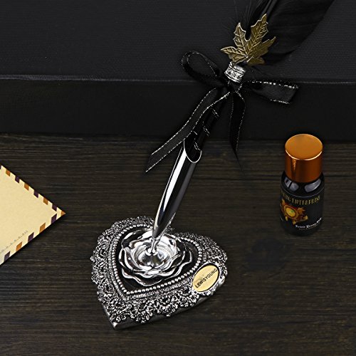 -. Feature : Comes with 5 extra calligraphy nibs,1 goose feather pen,1 10ml ink pot(Without Ink) and 1 Relief Pen Holder. Perfect to meet the different need in your calligraphy English writing. / Mix of stainless steel and iridium alloy to prevent rust and ensure durability. Elegant in appearance, loyal to the spirit of ancient European in making pens. / Easy to use and write beautifully, can be an English practicing writing quill / English calligraphy pen. Please make sure that the ink dip is no more than the half of nib when use. / Exquisite packing, a popular luxury gift for your families and friends in Christmas, Thanksgivng Day, birthday and so on. / Please Note: Due to some Restrictions of Aviation Regulation, the ink in the box have to be discarded, we are so sorry that you will receive an empty ink pot.