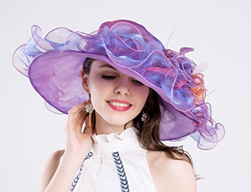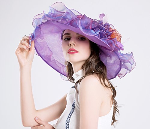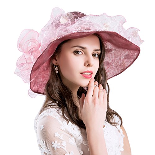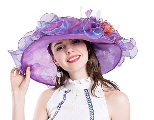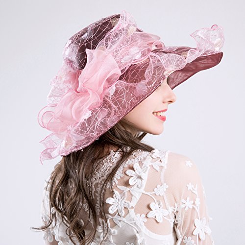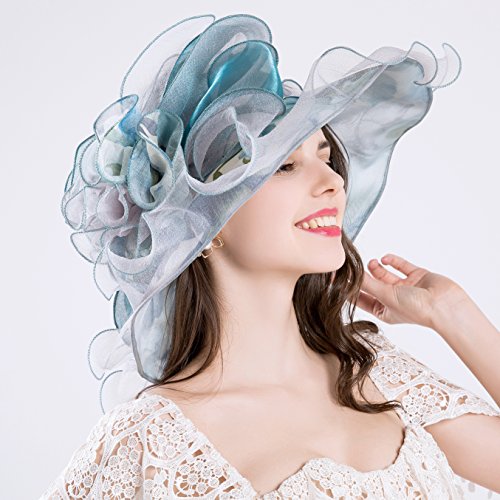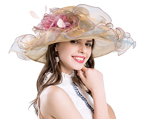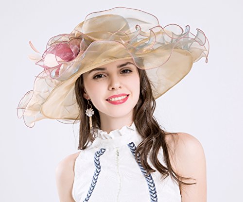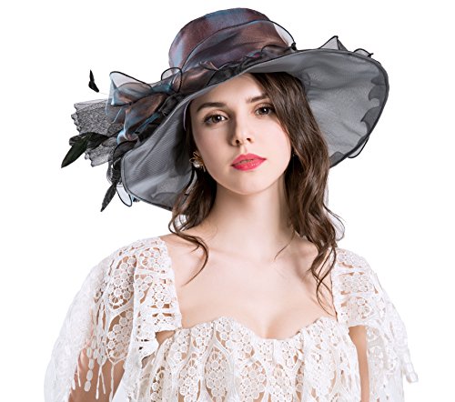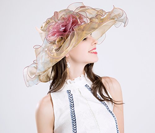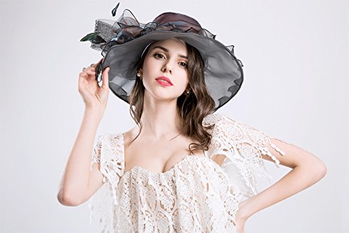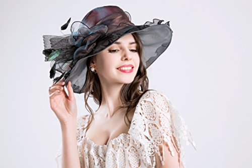 | (Kimimore)/Accessories/Hats/DIRECT FROM USA/Womens Kentucky Derby Hats Organza Church Summer Wide Brim Sun Hat Flower Fascinator Hat Tea Pa... |