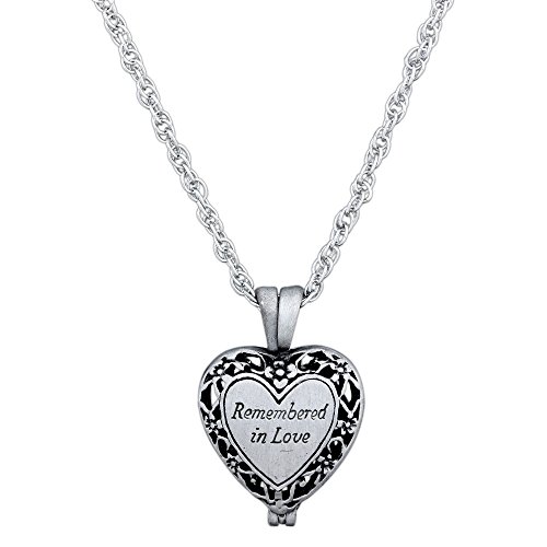 Beautifully engraved memorial heart locket contains an urn for ashes