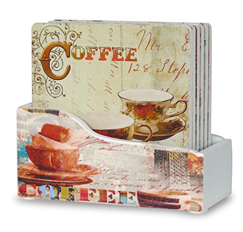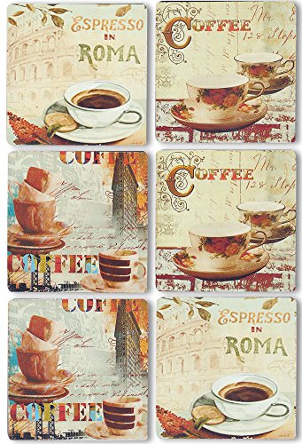 - SET of 6 Coasters, each with a unique retro coffee theme design.