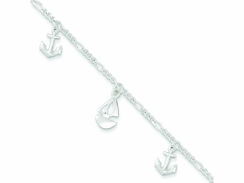 -. Title : Sterling Silver Polished Boat and Anchor W/ 1in Ext. Anklet
