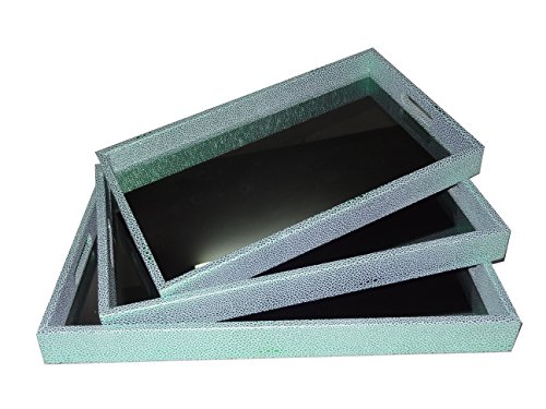 - Each tray features a center mirror and a seafoam green shagreen design and smooth, cutout handles