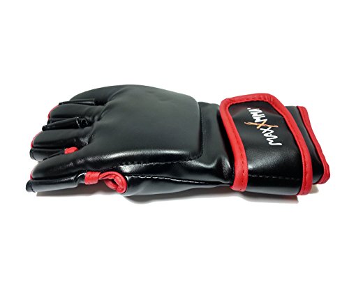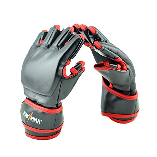 -. Binding : Misc. -. Brand : MaxxMMA -. Color : Black/Red -. EAN : 4713696505136 -. Feature : Premium synthetic leather provides long lasting functionality and durability while training. / A Full wrist wrap strap provides adjustable superior wrist support and allows for a more customizable fit. / The refined glove shape is designed for improved finger flexibility and hand protection. / These gloves are a must for any wrestler or MMA fighter. -. IsAutographed : 0 -. IsMemorabilia : 0 -. Label : MaxxMMA -. Manufacturer : MaxxMMA -. ProductGroup : Sports -. ProductTypeName : SPORTING_GOODS -. Publisher : MaxxMMA -. Size : L/XL -. Studio : MaxxMMA -. Title : MaxxMMA Mixed Martial Arts Training Grappling Gloves