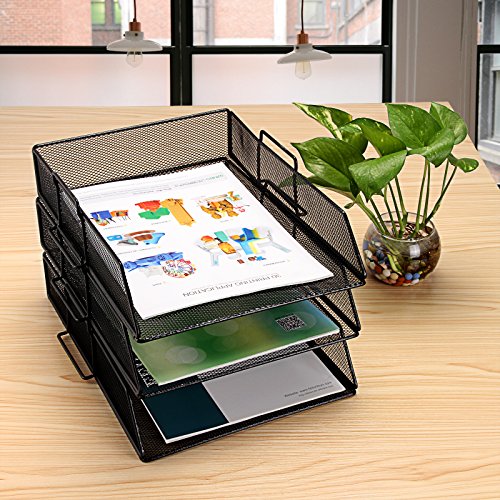 Huayao 3 Tier Metal Mesh Desktop File Document Organizer Tray Office Supply Storage Holder