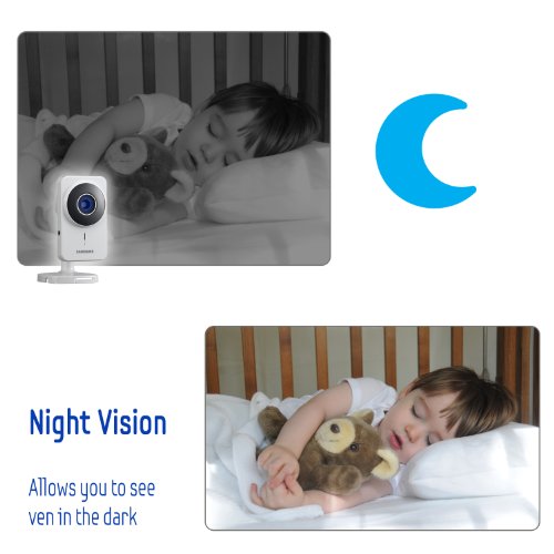 -. Feature : Refurbished by Samsung, Updated with new firmware version 2.0, Improved Wi-Fi Direct Connection (Direct Setup via Smartphone or PC platform) / Built-in Mic and Speaker for Two way talk, Built-in IR LED Lamps for Powerful Night Vision (5m/850nm) / Clearer color imaging (Applied ICR), Monitor on PC, Mac, and Smartphones, Audio and Motion detection and notification via Youtube, Picasa or Twitter / Easy 30 second clip recording on YouTube, Multi-Streaming Up to 10 cameras / 90 Days Manufacturer's Warranty, iWatchLife Option for Clouding Storage/Monitoring; Currently not Compatible with Apple Routers