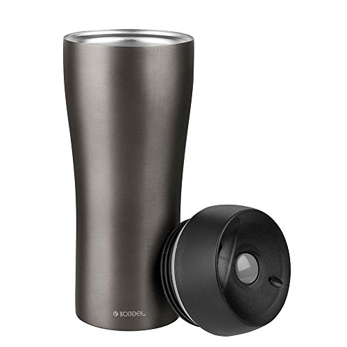 Isosteel VA-9581QAT 14 liq. oz Stainless Steel Double-Walled Vacuum Drinking Mug color coated titanium-gray
