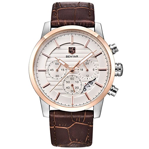 -. Feature : WATCH MATERIAL: High quality brown Genuine Leather Strap with Pin Buckle, Precise Japan quartz movement. / WATERPROOF FOR DAILY USE: 3 ATM Water resistant, NOT suitable for diving, swimming, snorkeling, water-related work) / WATCH FUNCTION: All sub-dials and hands and are functional, Full Functional Chronograph, 30M waterproof and Date Display / PACKAGE: This watch will come with a watch box. A Fashion Birthday, Christmas, Valentine day, Wedding, New Year Gift / CUSTOMER SERVICE: Please do not worry any quality problem, All watch in our store will enjoy 24 Month warranty. 30 Day money back guarantee for any reason.