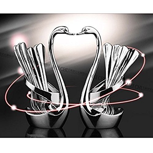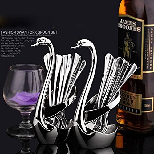 -. Title : Dinnerware Set, Jorunhe Stainless Steel Fruit/Dessert Flatware Set for 9-1 Swan Base Holder with 4 Forks & 4 Spoons