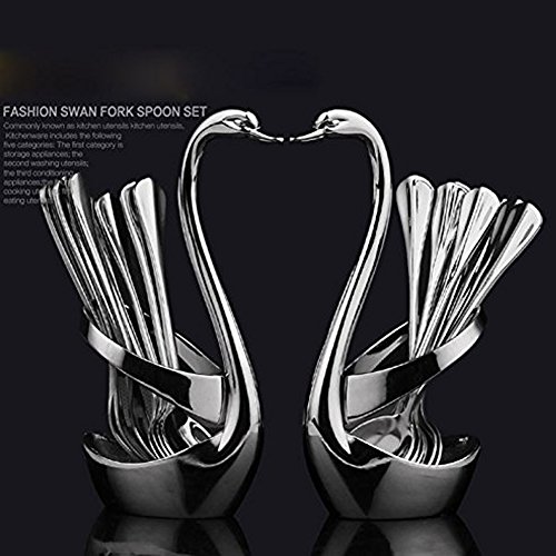 -. Feature : High quality stainless steel, resistent and durable / Flatware spoon fork set, serving fruit, salad, coffee, dessert / Please Pay Attention The Size:Fork length:5.1 inches, wide:0.6 inches;Spoon length:4.9 inches,wide:1.12 inches / Unique swan figure design, classy and elegant even for home decoration / Never a bad choice for Thanksgiving or Christmas!