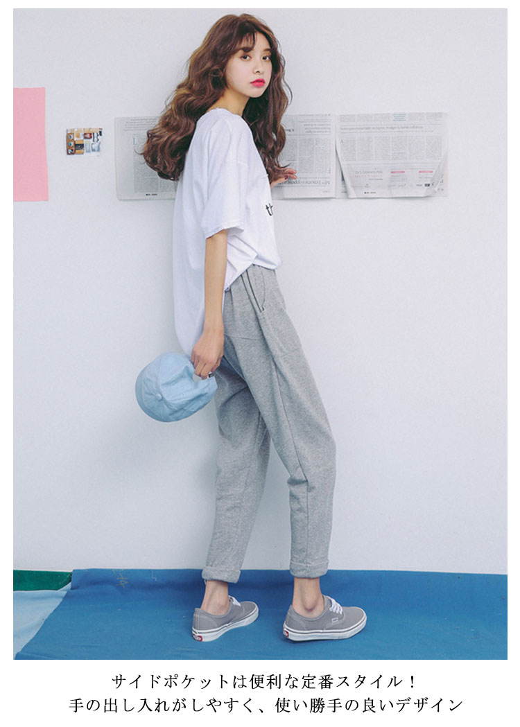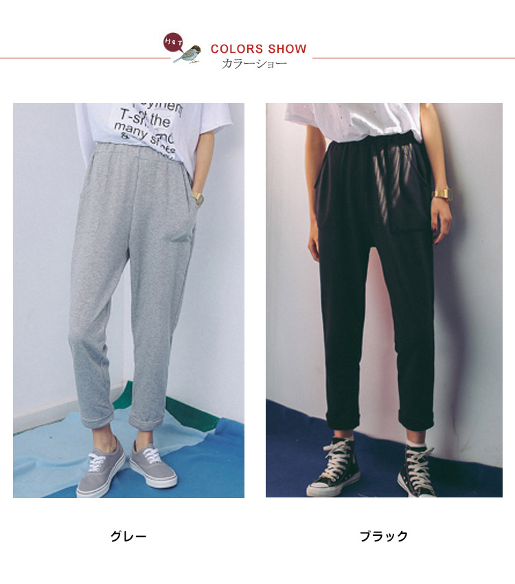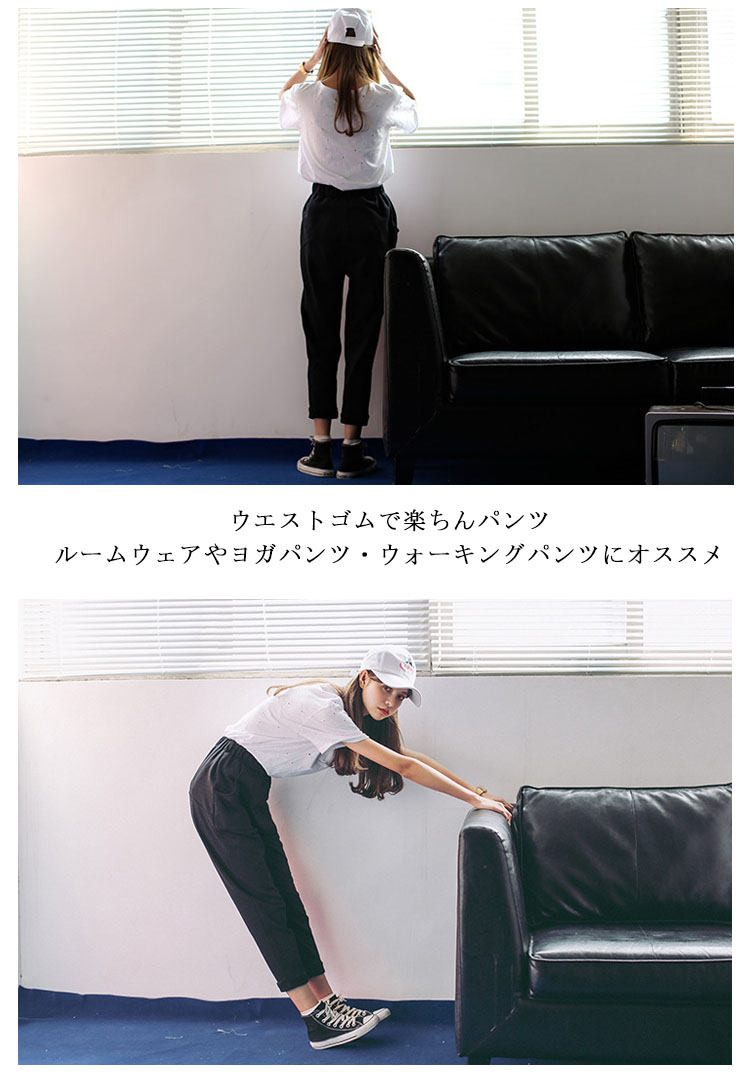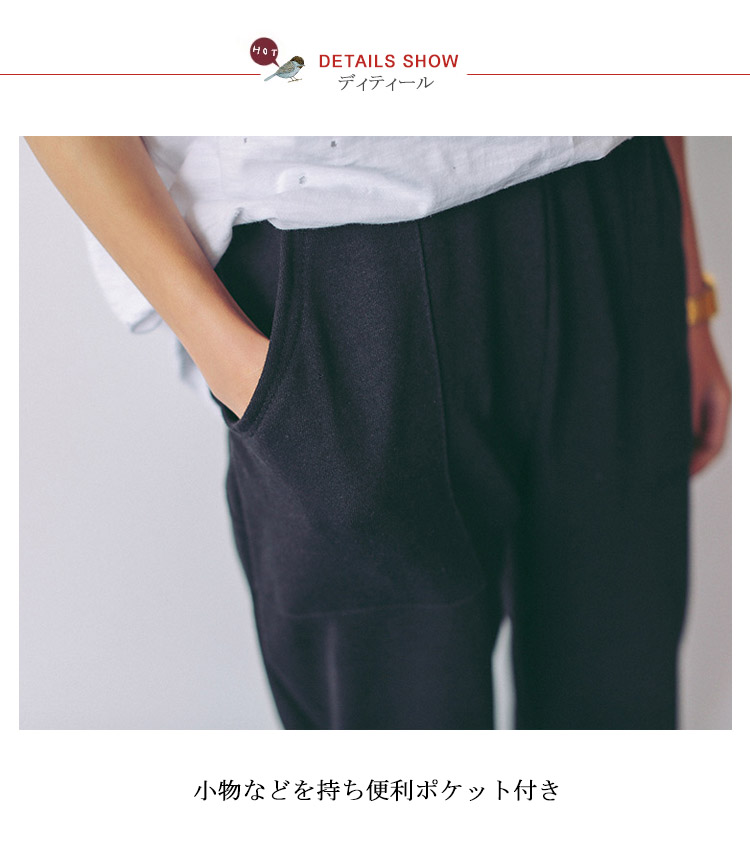 | ウエストゴムで楽ちんパンツルームウェアやヨガパンツ・ウォーキングパンツにオススメサイドポケットは便利な定番スタイル!手の出し入れがしやすく、使い勝手の良いデザイン | |