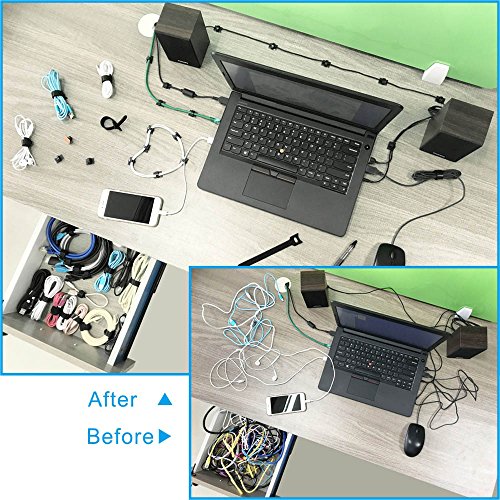 - 50 Clips and 50 Ties Set: Utilize the clips to organize the cables you use daily, and use the ties to wrap up and store those items seldom used, for a tidy and easy life!