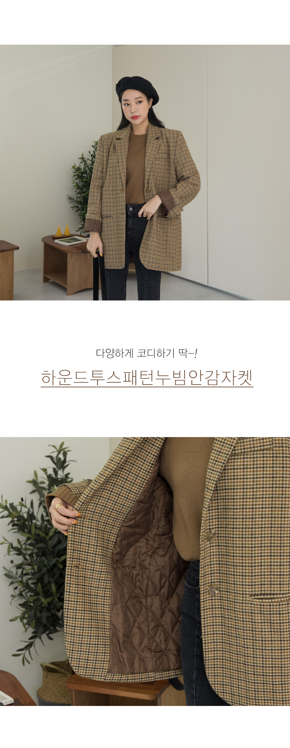 데일리하게 입기좋은 누빔안감 으로된 하운드투스패턴의 자켓이에요.