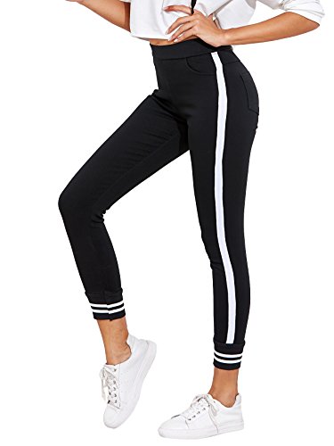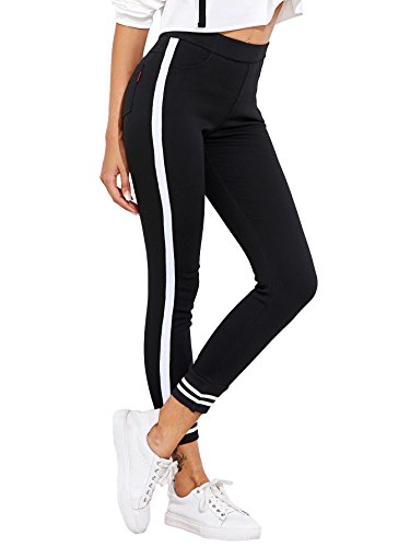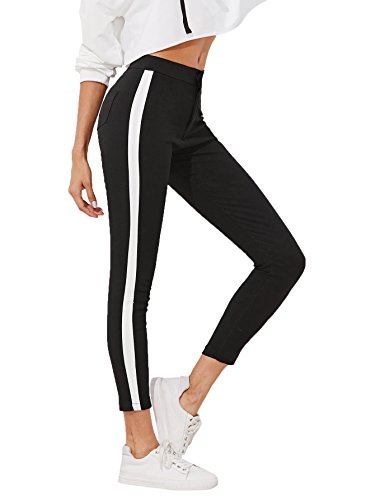 -. Title : Romwe Women's Mid Waist Striped Contrast Sport Leggings Pants