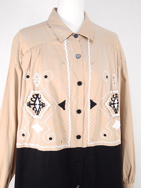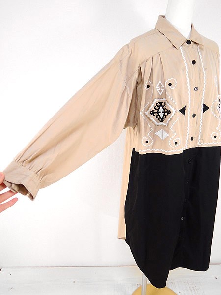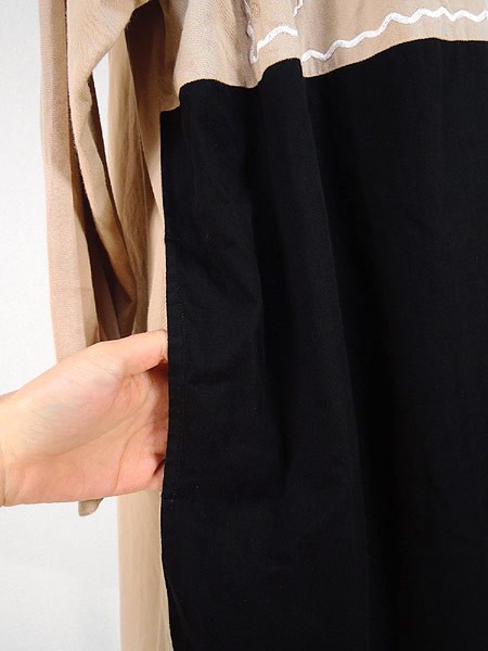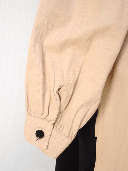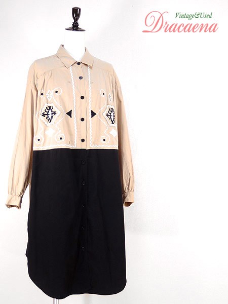 Ladies ブランド- カラーベージュ・黒 メール便不可 コンディション★★★ 素材コットン 表記サイズM スタッフコメント袖にうっすらシミがありますが、あまり目立ちません。 実寸サイズ 着丈 106 cm 身幅 71 cm 肩幅 53 cm 袖丈 50 cm ※ウエスト・ヒップ以外は平置き採寸【code】#e
