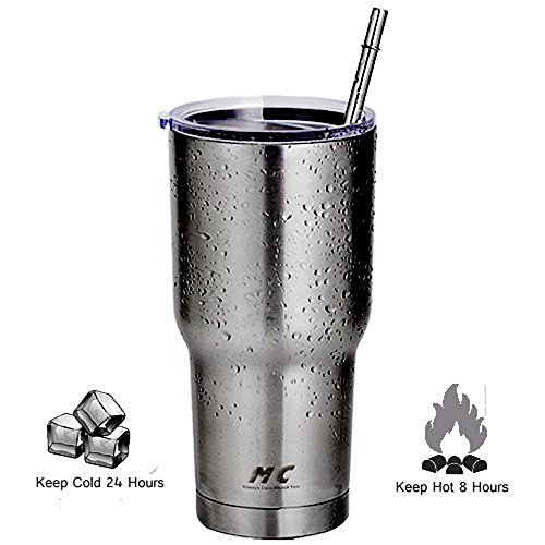 M&C 30 OZ TRAVEL TUMBLER WITH STRAW, FOOD GRADE STAINLESS STEEL