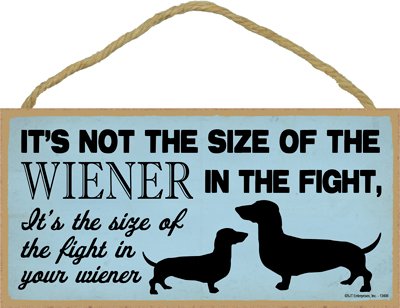 (SJT13406) It's not the size of the wiener in the fight, it's the size of the fight in your wiener 5" x 10" wood plaque, sign