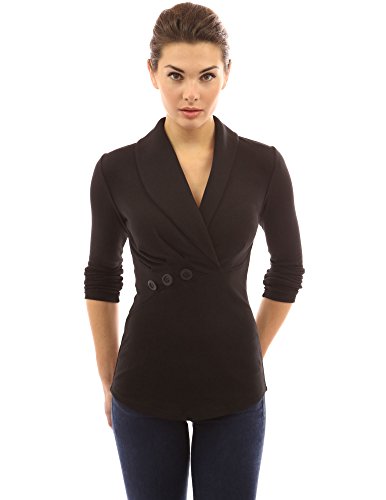 | PattyBoutik Women's Shawl Collar Pleated Detail Blouse |