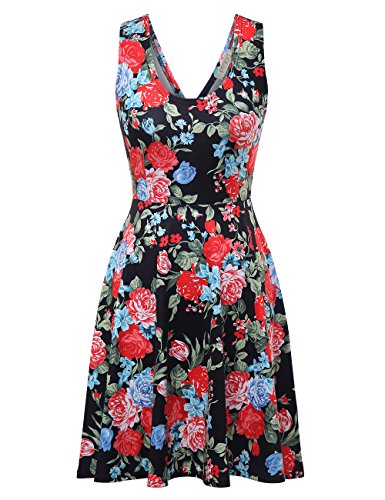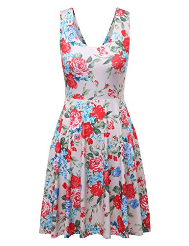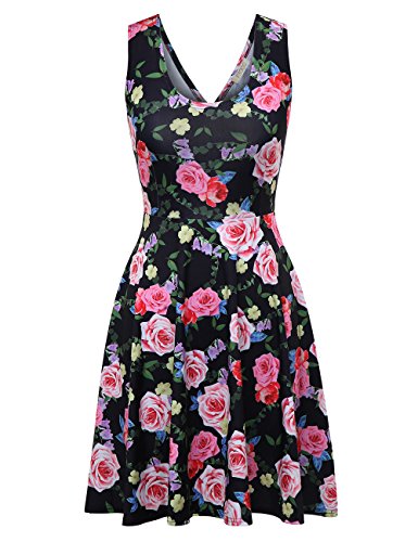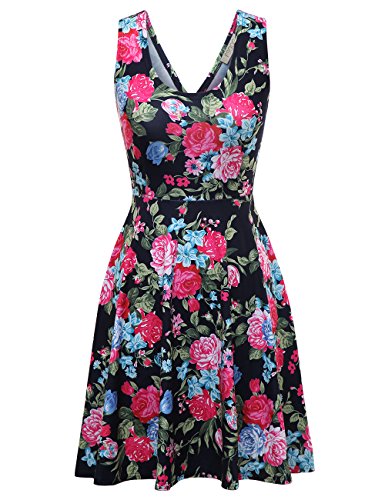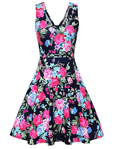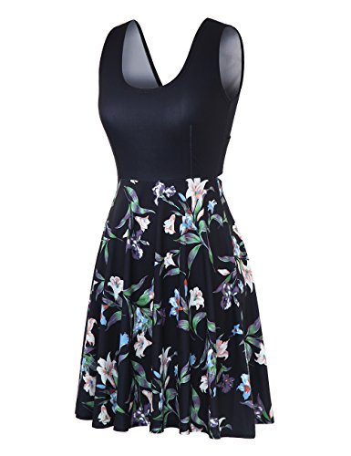 FSOOG Women Summer Beach Casual Flared Floral Tank Dress