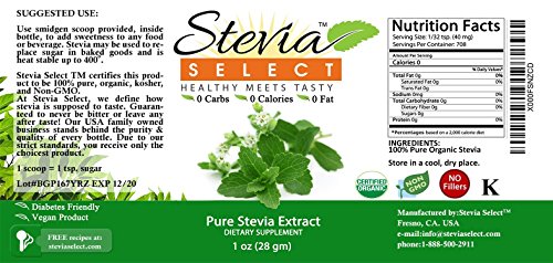 Our stevia powder extract is Certified ORGANIC, KOSHER, & NON-GMO. Manufactured in the U.S.A by a family owned business.