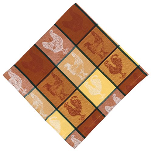 100% Cotton Yellow & Brown Jacquard 22"x22" Napkins, Set of 6 - Chicken Coop