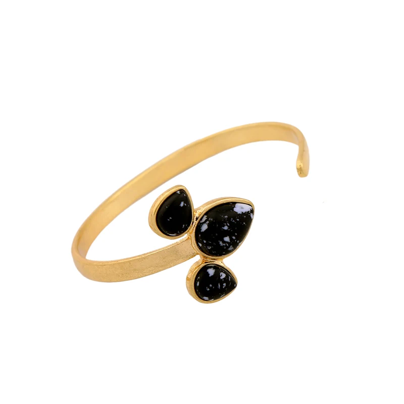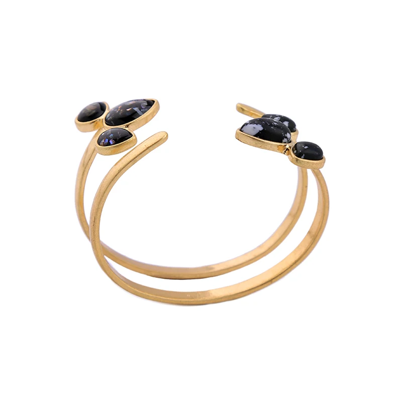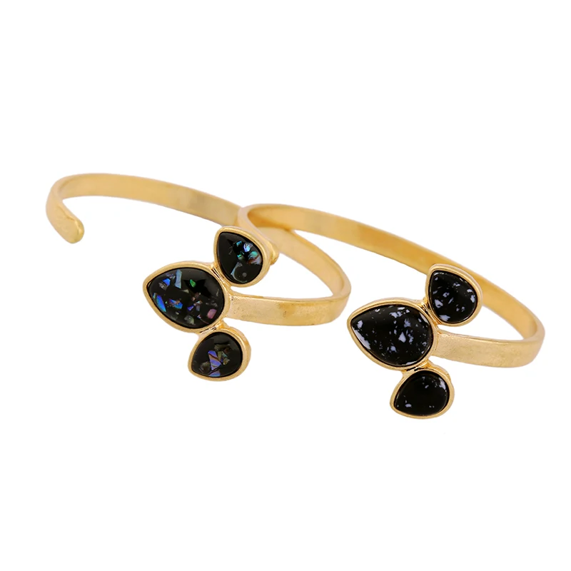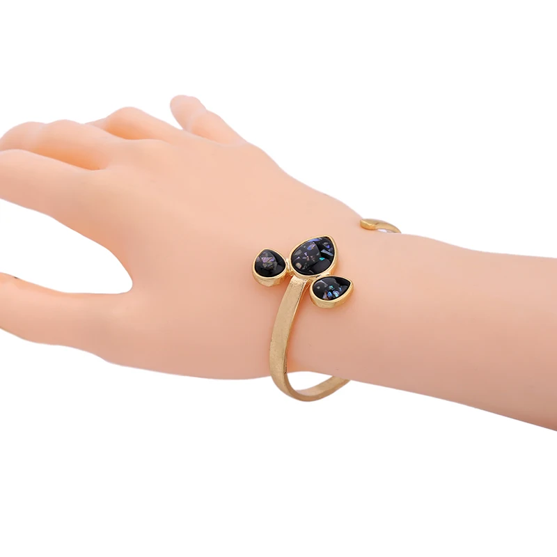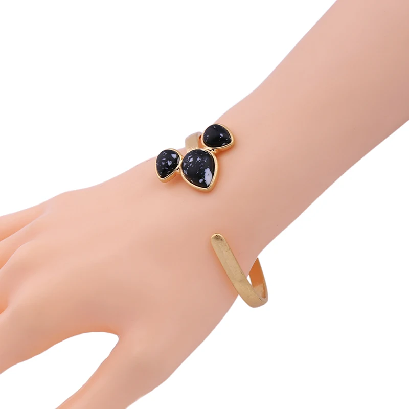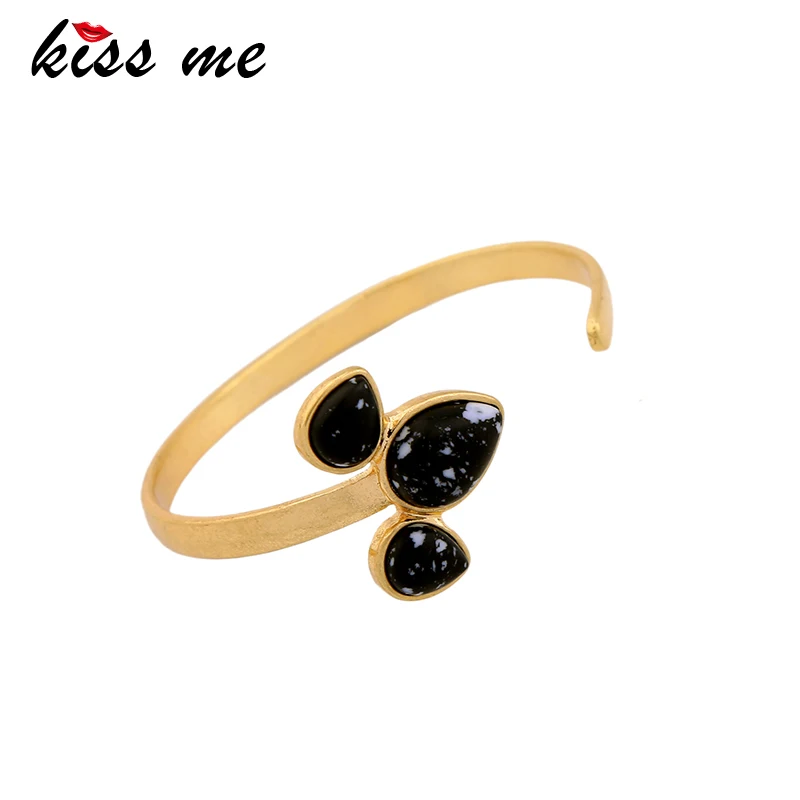 Production name ::KISS ME Design Gold Color Alloy Synthetic Stone Geometric Cuff Bracel