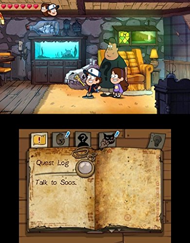 -. Binding : Video Game -. Brand : Ubisoft -. EAN : 0887256015411 -. Edition : Standard -. ESRBAgeRating : Everyone -. Feature : ENTER GRAVITY FALLS - Explore the Mystery Shack, the Gnome Forest, & more, powered by beautiful UbiArt graphics / MADE IN COLLABORATION WITH CREATOR ALEX HIRSCH - Experience the show's signature humor & fan-favorites brought to life / SOLVE AN ALL-NEW MYSTERY - Learn new lore about inhabitants of Gravity Falls & unlock secrets of the town's past / PLAY AS BOTH DIPPER AND MABEL - Switch between characters & use their unique powers and abilities -. Genre : simulation-game-genre -. HardwarePlatform : nintendo_3ds -. IsAdultProduct : 0 -. IsEligibleForTradeIn : 1 -. Label : UBI Soft -. Manufacturer : UBI Soft -. Model : UBP10501076 -. MPN : UBP10501076 -. NumberOfDiscs : 1 -. NumberOfItems : 1 -. OperatingSystem : nintendo_3ds -. PackageQuantity : 1 -. PartNumber : UBP10501076 -. Platform : Nintendo 3DS -. ProductGroup : Video Games -. ProductTypeName : CONSOLE_VIDEO_GAMES -. PublicationDate : 2015-10-20 -. Publisher : UBI Soft -. ReleaseDate : 2015-10-20 -. Studio : UBI Soft -. Title : Gravity Falls: Legend of the Gnome Glets - Nintendo 3DS Standard Edition -. UPC : 887256015411