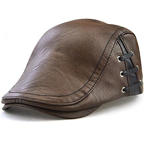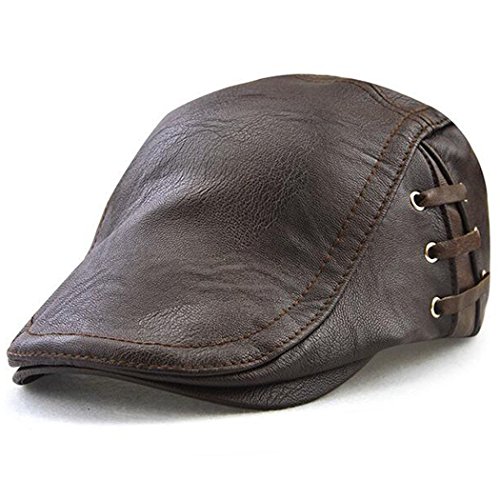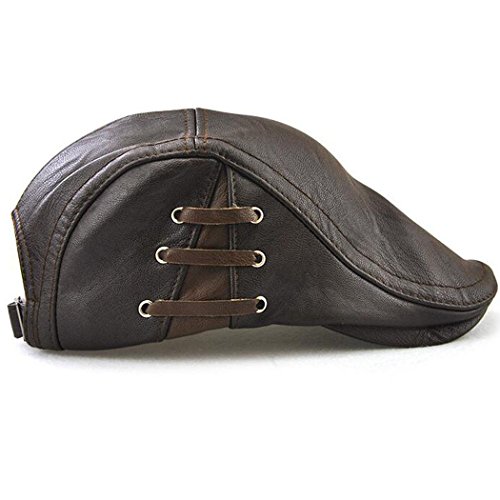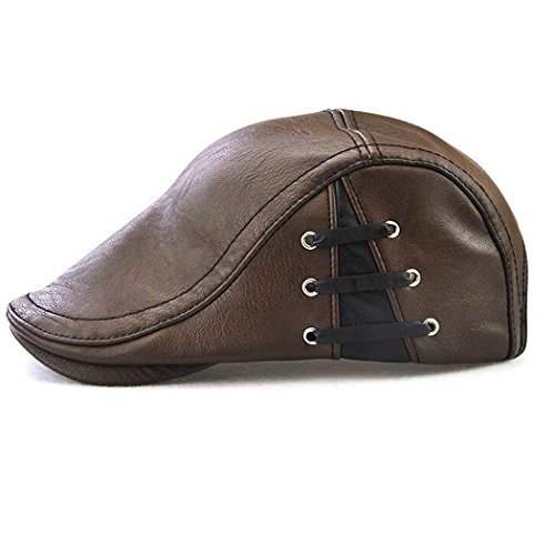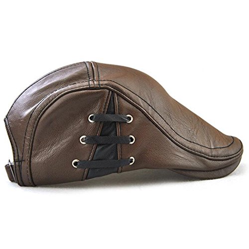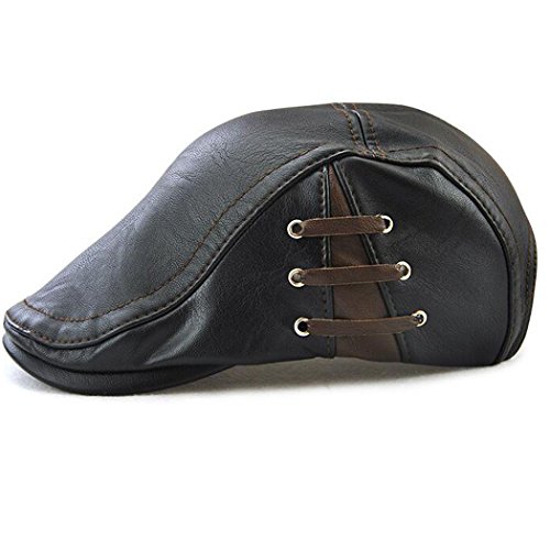 Binding : Apparel Product Description Name : Hibelief Men Pu Leather Visor Caps Beret Hats Newsboy Hunting Hat ★Material :100% Pu Leather ★Color: Coffee/Black/Light Coffee ★Good stitching,adjustable strap,one size fit most. ★There is bandage at side ,which make the hat stylish. Notice : There might be a slight color difference due to the monitor settings. For the reason of different measurement method,Please allow (1-3cm) deviation for the measurement data. 0