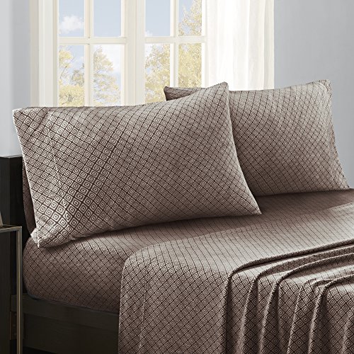 True North by Sleep Philosophy Micro Fleece Sheet Set, Queen, Brown Diamond