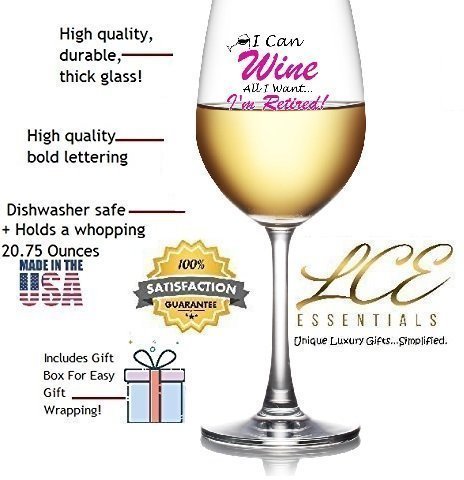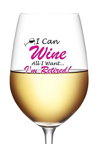Our premier decorative line of 20.75 ounce "I Can Wine All I Want...I'm Retired" quote party wine glasses are great as a retirement party present! Features a very popular and favorite saying. Looking for retirement gift ideas? This unique wine glass makes a great sentimental thoughtful meme gag gift for a?womans office retirement party, bachelorette party ( toasting to being retired from single life), or at the retirees?going away party. After all the stresses of the day, your retiree will look forward to being able to unwind in a unique gift that grooms her to prepare for what the retired life is all about...fun rest and relaxation! Pair with wines like Cabernet, Chardonnay, Moscato, Pinot Noir, or Riesling. ?Enjoy the humorous laughter that will ensue for years to come! Great corporate gift for a boss executive or other staff person leaving the field and retiring. A welcomed addition to any?farewell retirement party. Perfect vino gift to say, "You are appreciated. You've done a great job in what you do. Please enjoy the fruits of that labor...(preferably grape!) Here's to making sure that retired life is all that you deserve it to be and more!" This gift says all that, and more! This 20.75 oz wine glass drinkware is very uniquely decorated and defined, in that the phrase can be interpreted different ways. Our customers say that this glass is a perfect gift for a Mother's day present as well, even though their Mom's aren't retired! This would make for a great funny gift for a Mom, as the saying, " I Can Wine All I Want, I'm Retired" can also be taken as a "I just got off of work, I'm officially off the clock for today...do not bother me." or some have seen it as "Kids...when you see Mommy with this glass, this is Mommy's timeout...Mommy's recess, and I am officially off duty and retire from snotty noses and diaper duty." 0 |