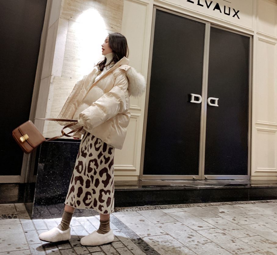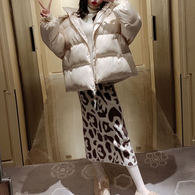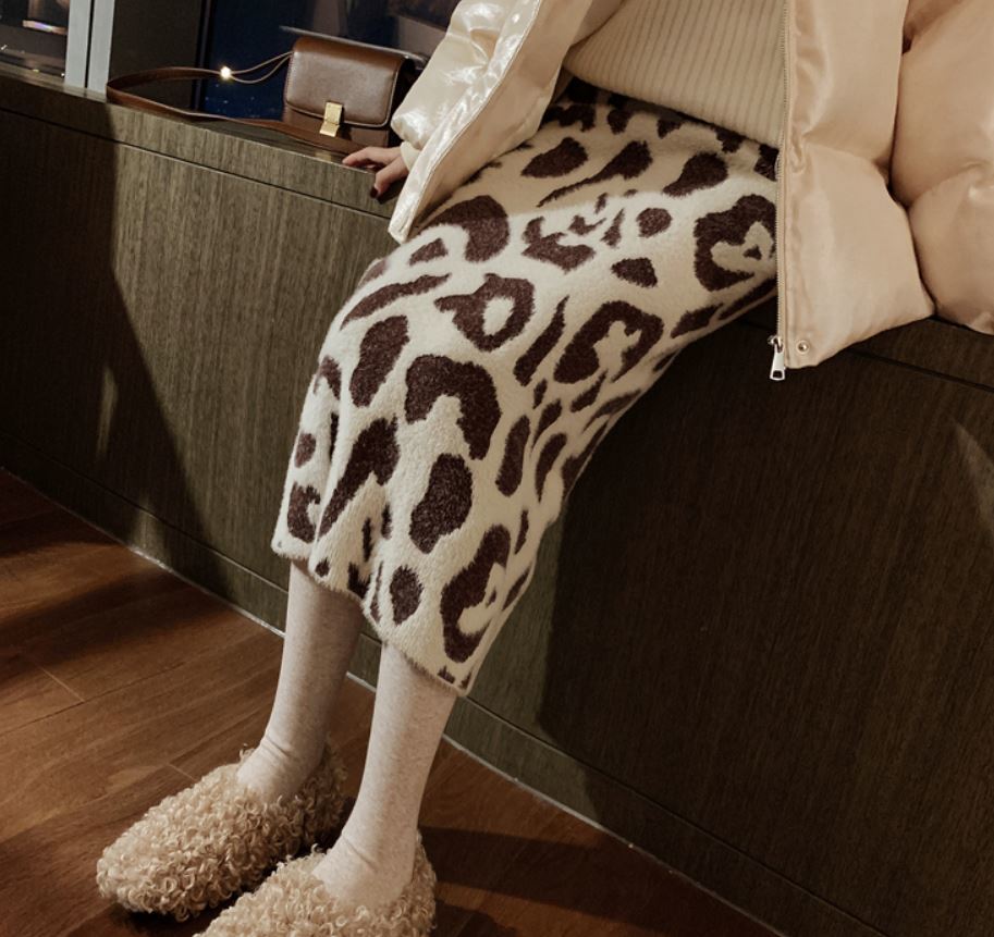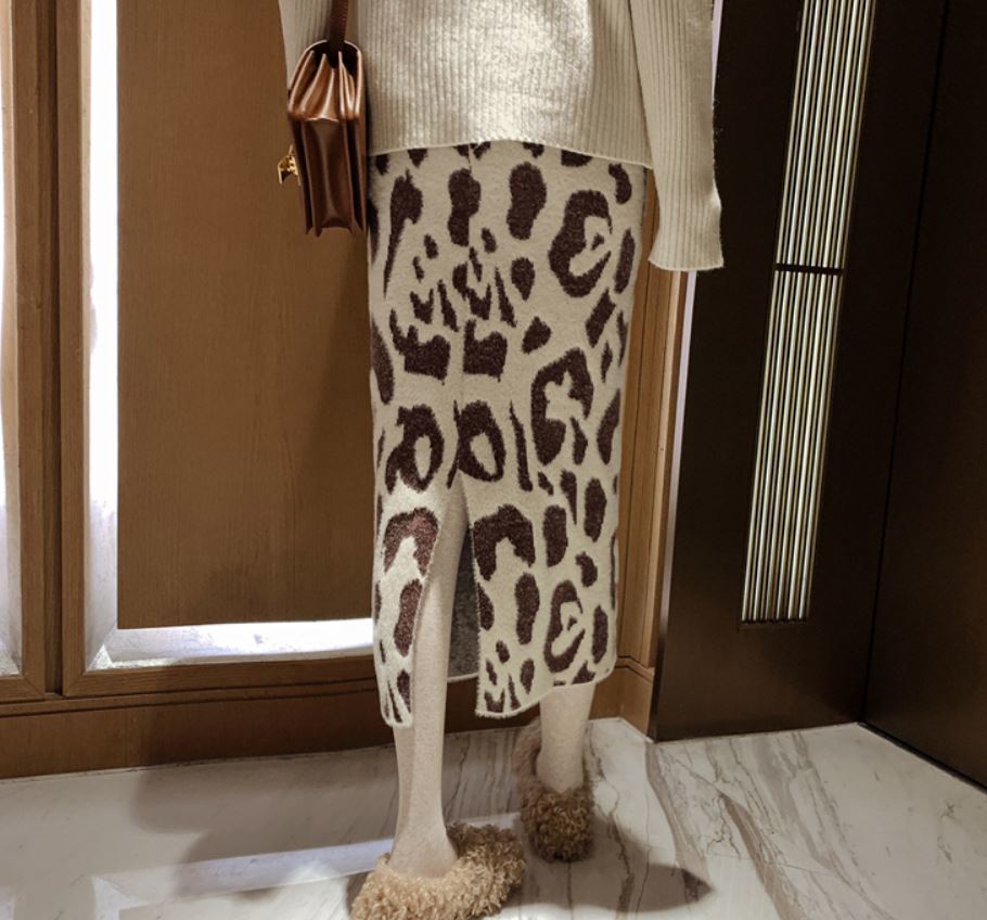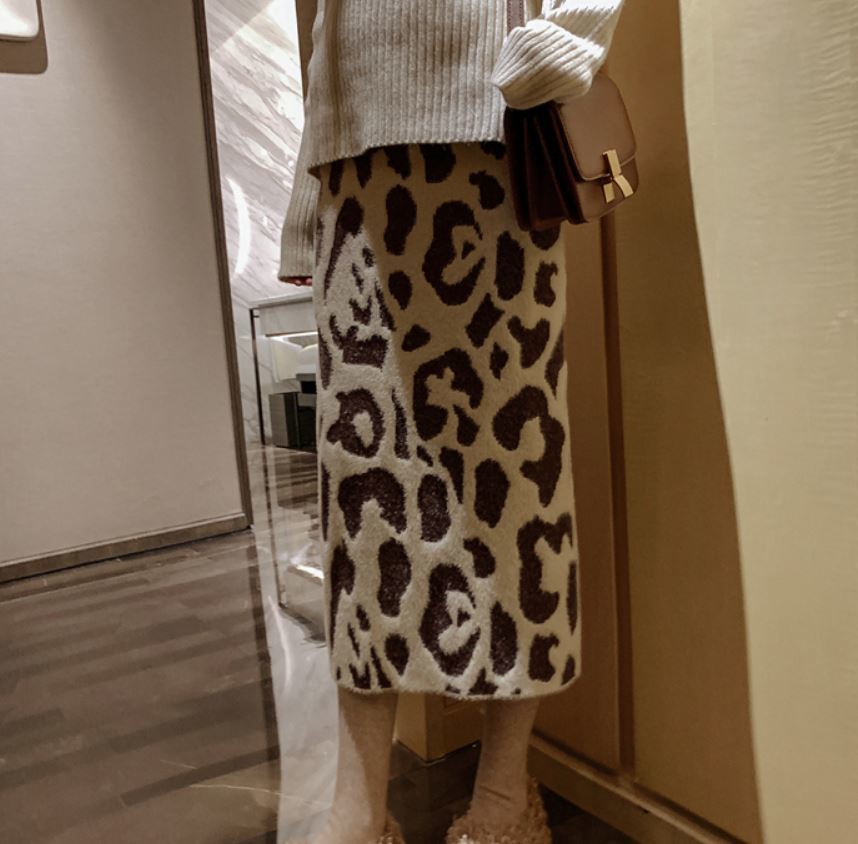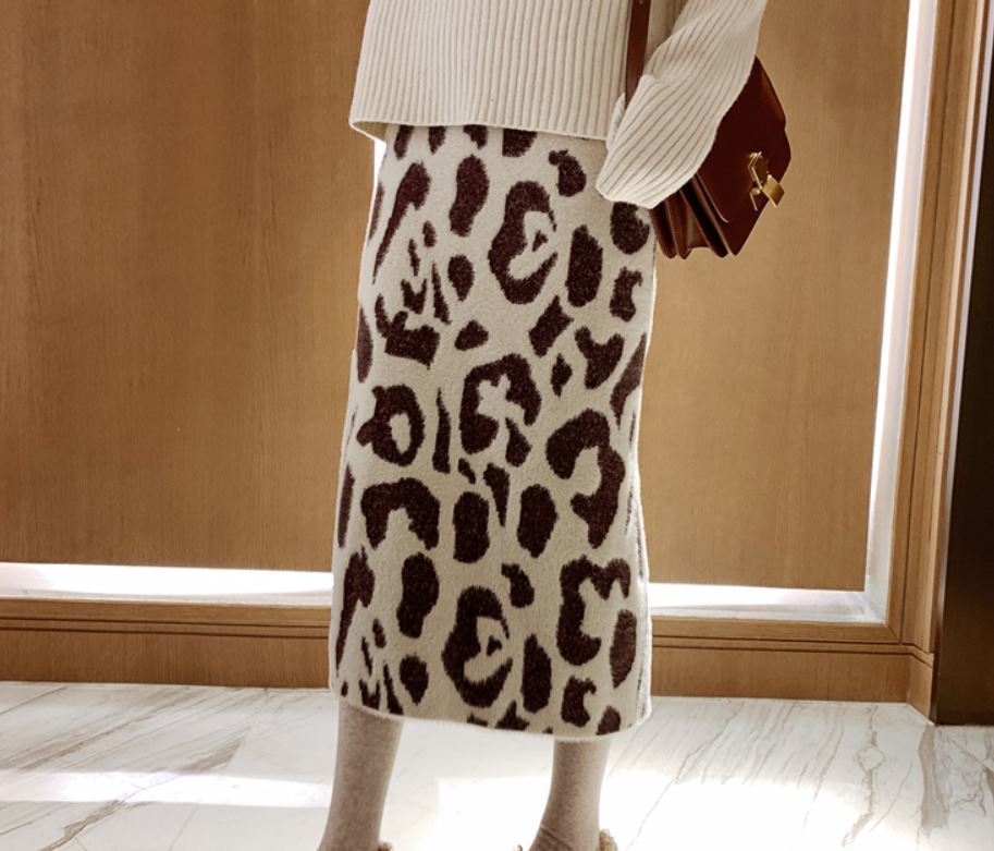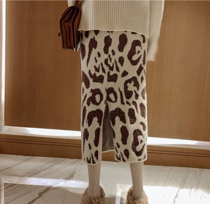 大き目の豹柄がトレンドライクでとってもフェミニンなニットスカート♪