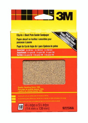 3M 9225NA 4.5-Inch by 5.5-Inch Clip-On Palm Sander Sheets, Asst. Grit, 18-pack