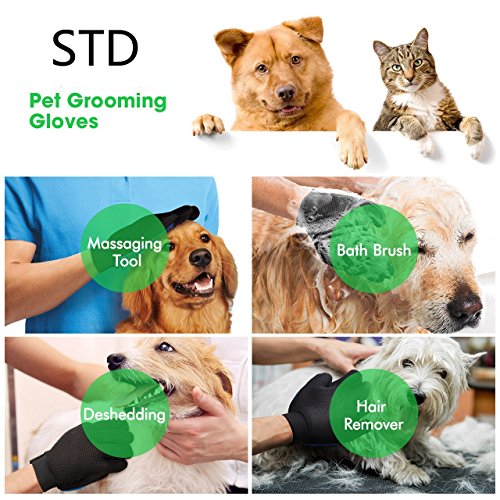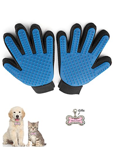 Pet Dog Cat Grooming Glove, Real Touch Shedding Hair Clean up, Healthcare Bath Glove Hair Removal Brush and cats / dogs tag included by Standard