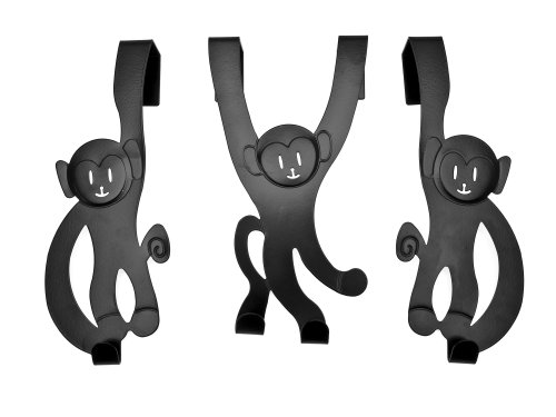 -. Feature : Over the door monkey hooks / Made of heavy duty steel / Pink painted finish / Set of 3 hooks / Measure 8-inch tall