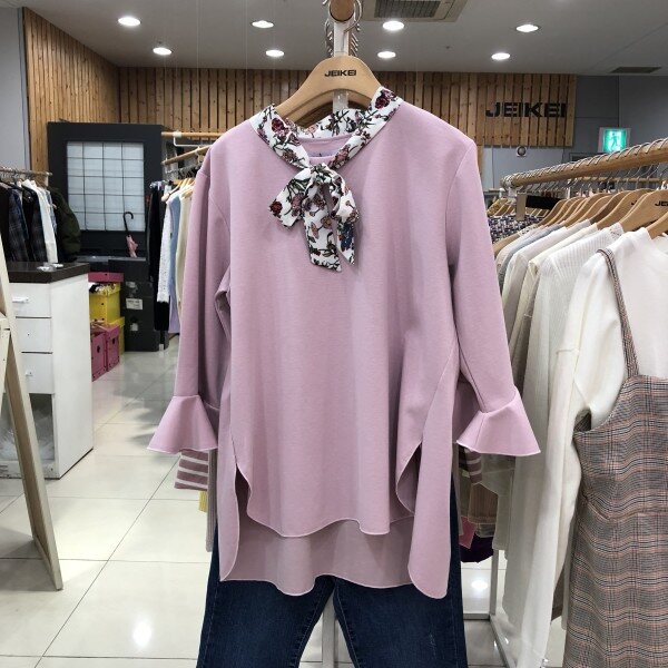 넥라인에 플라워 프린트가 포인트인 블라우스입니다.