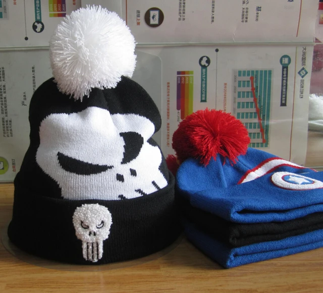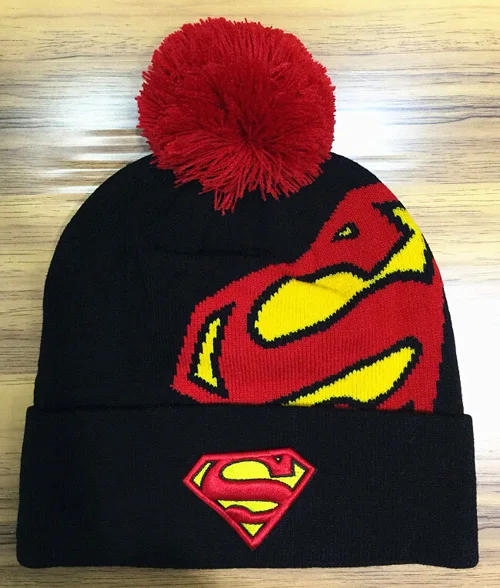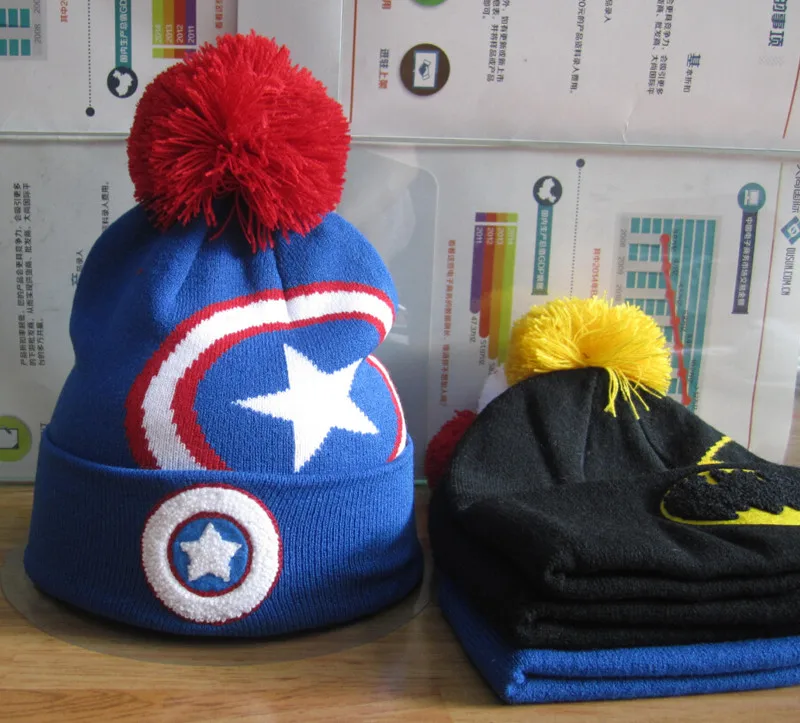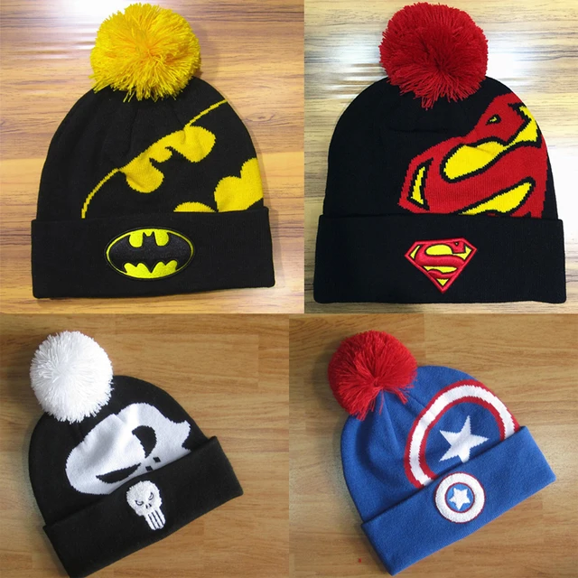 2016 패션 겨울 영웅 배트맨 슈퍼맨 비니 모자 니트 모자 남성 캐주얼 따뜻한 두개골 캡틴 아메리카 울 니트 모자