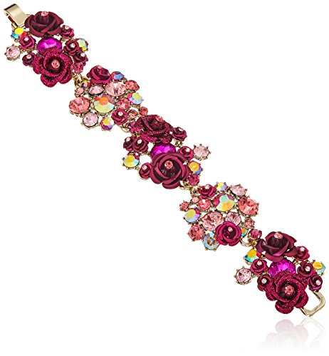 -. Title : Betsey Johnson Roses Gold and Pink Floral Cluster Bracelet