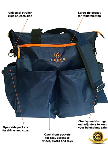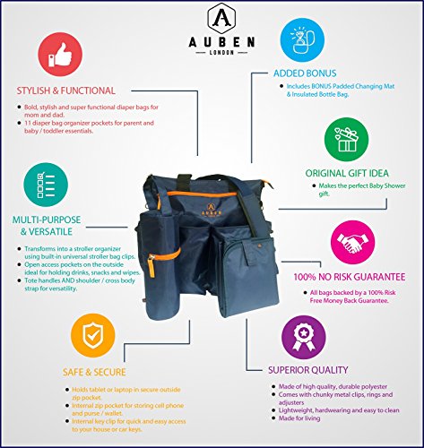 Auben Stylish Diaper Bag - Stroller Organizer - Baby Bag - BONUS Changing Mat Bottle Bag