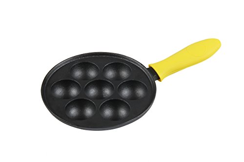 Upstreet's cast iron aebleskiver pan is scratch resistant and easy to clean. It weighs 4 lbs.