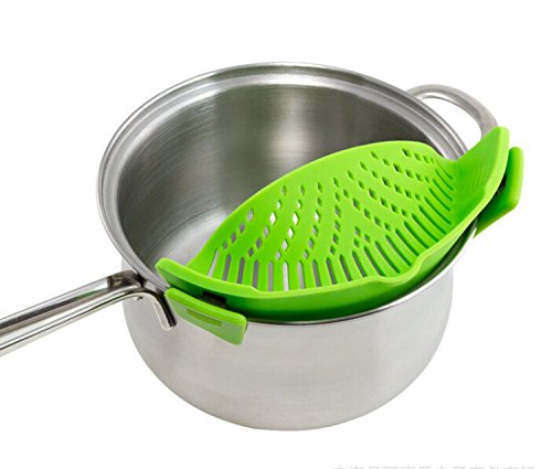 SIMPLE STRAINER - The Best Clip-on Green Silicone Pasta Strainer - Dishwasher Safe Colander Perfect For Draining Pasta, Vegetables, Potatoes, etc. - Universal Fit by Profectus Products