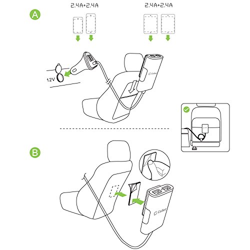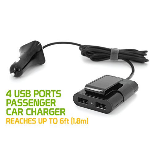 Cellet Front and Back Seat Car Charger, 4-Port Front & Back Seat Car Charger-Universal-for Smartphones/Tablets/ iPhone/iPad/Android - Black