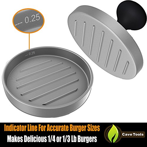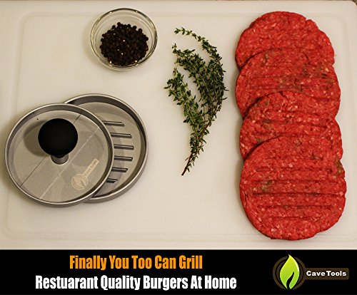 Burger Press - PREFECTLY FORMED HAMBURGER MAKER - Includes 200 Non Stick Patty Papers For Making Quarter Lb or Large 1/3 Pound Stuffed Pocket Burgers - Best Aluminum Presser BBQ Gift Idea - Cave Tools