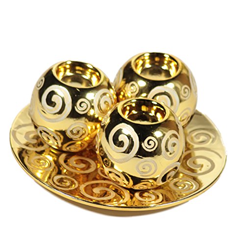 Essential Décor Entrada Collection 3-Piece Decorative Tabletop Ceramic Plate with Ball, 10 by 10 by 5-Inch, Gold